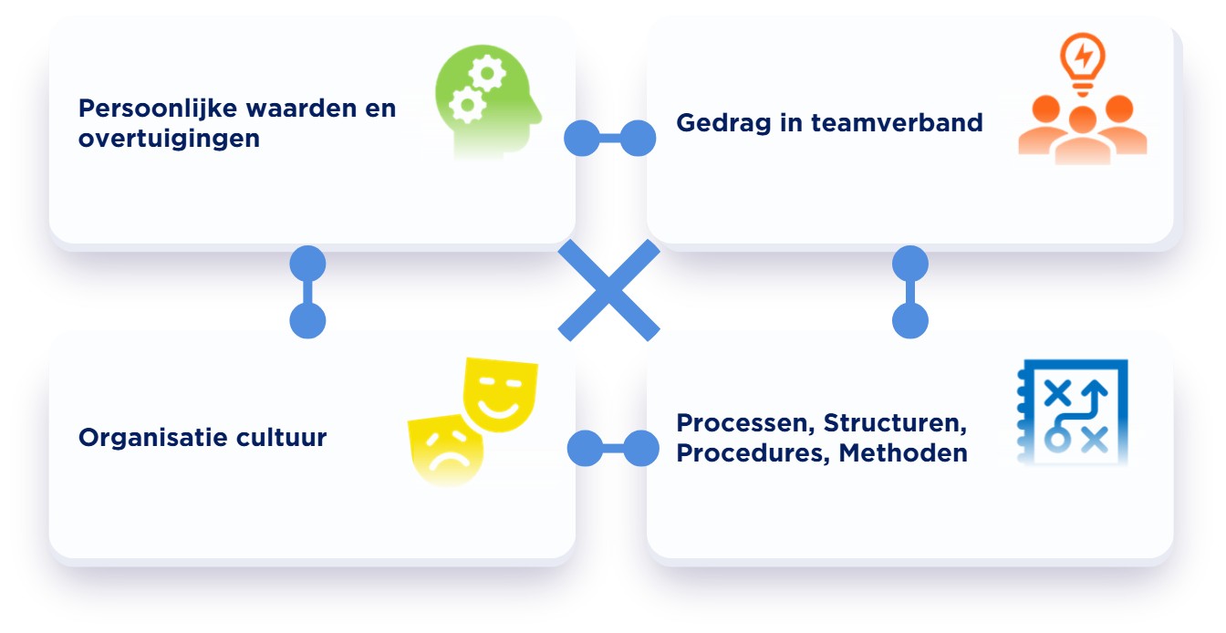 Succesvol resultaat komt echter pas (duurzaam) tot stand als er niet alleen aan de oppervlakte wordt veranderd, maar als ook het bijhorende gedrag en de onderliggende drijfveren en mindsets worden aangesproken. Dan pas worden patronen doorbroken, ontstaan initiatief en innovatie, groeien teams in hun samenwerking en wordt positiviteit de norm. De verbetercultuur groeit daarmee.